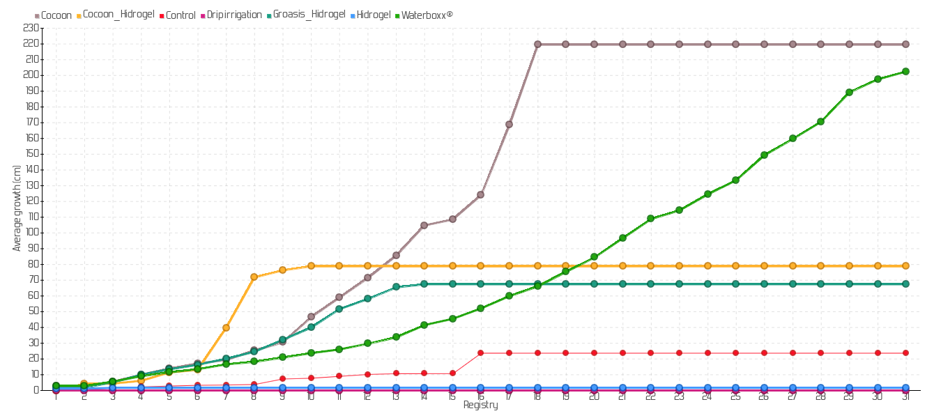 Average growth of plants sown of the species Acacia macracantha in Baltra island:
