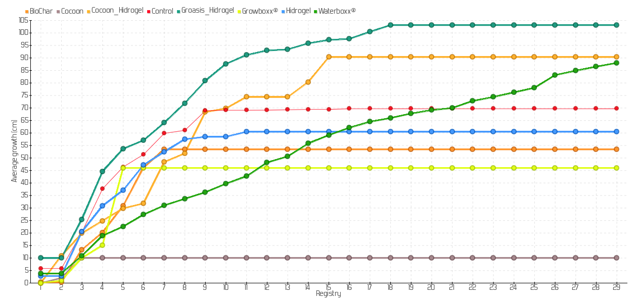 Average growth of plants sown of the species Alternanthera filifolia ssp. filifolia in Floreana island: