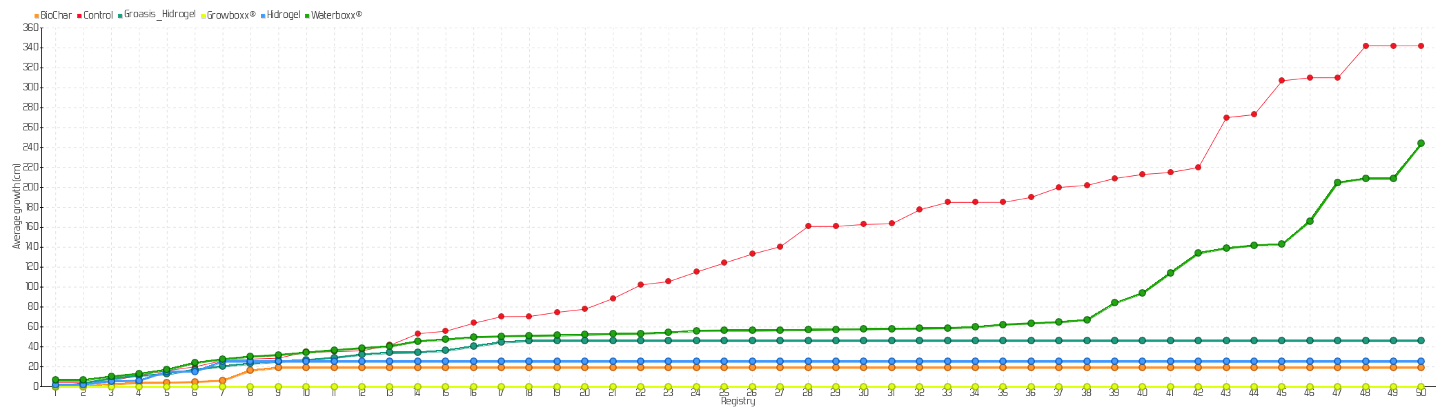 Average growth of plants sown of the species Maytenus octogona in Santa Cruz island: