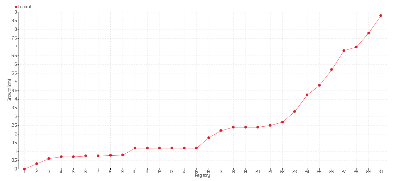 2 | 01/07/2013 | 6.50 cm | 0.30 cm | 0.0214 cm/day | 0.30 cm |