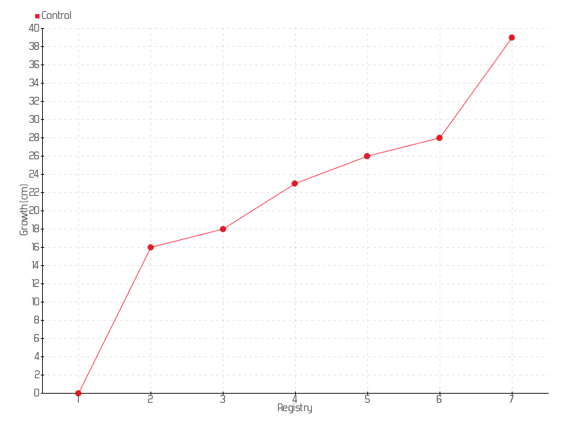 5 | 25/06/2021 | 43.00 cm | 3.00 cm | 0.0333 cm/day | 26.00 cm |