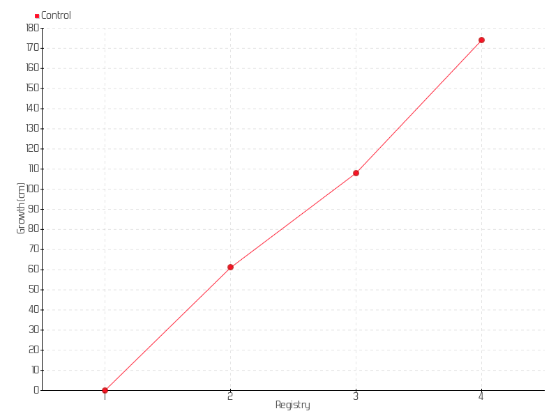 2 | 13/04/2021 | 63.00 cm | 61.00 cm | 1.5641 cm/day | 61.00 cm |