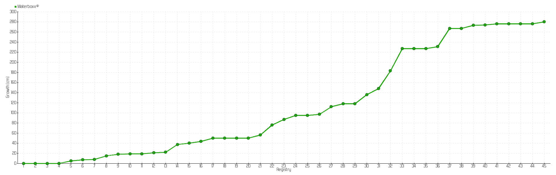 45 | 04/04/2025 | 289.00 cm | 4.00 cm | 0.0141 cm/day | 280.00 cm |