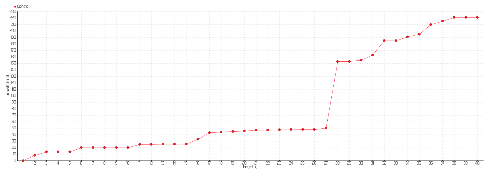 30 | 20/09/2017 | 200.00 cm | 2.00 cm | 0.0476 cm/day | 155.00 cm |