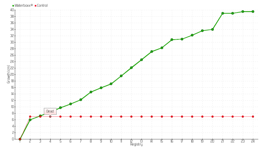 21 | 20/04/2018 | 45.00 cm | 5.00 cm | 0.0362 cm/day | 39.00 cm |