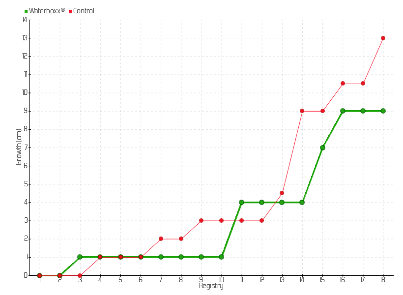 16 | 27/01/2017 | 13.00 cm | 2.00 cm | 0.0556 cm/day | 9.00 cm |