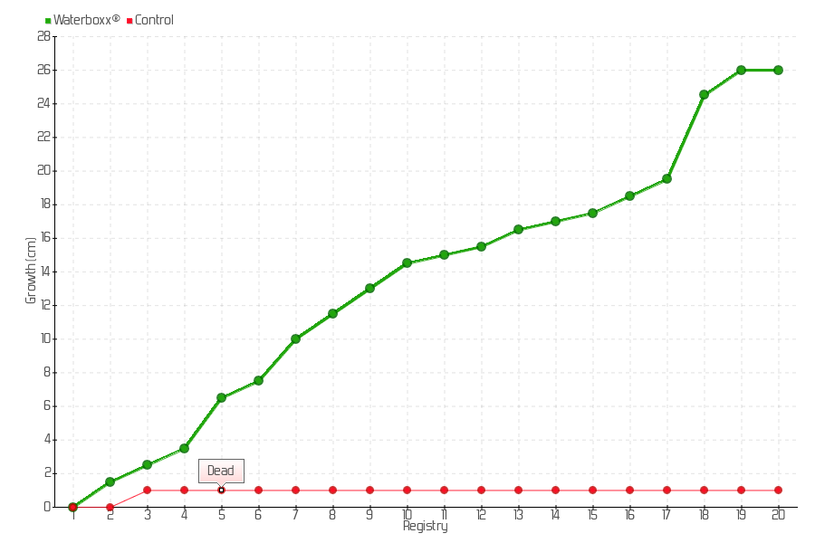 18 | 13/06/2017 | 42.00 cm | 5.00 cm | 0.0362 cm/day | 24.50 cm |