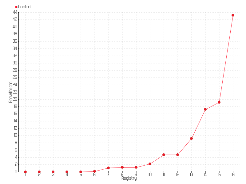16 | 18/07/2025 | 44.00 cm | 24.00 cm | 0.2526 cm/day | 43.20 cm |