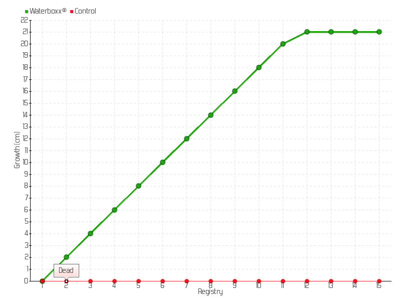 12 | 16/08/2016 | 23.00 cm | 1.00 cm | 0.0164 cm/day | 21.00 cm |