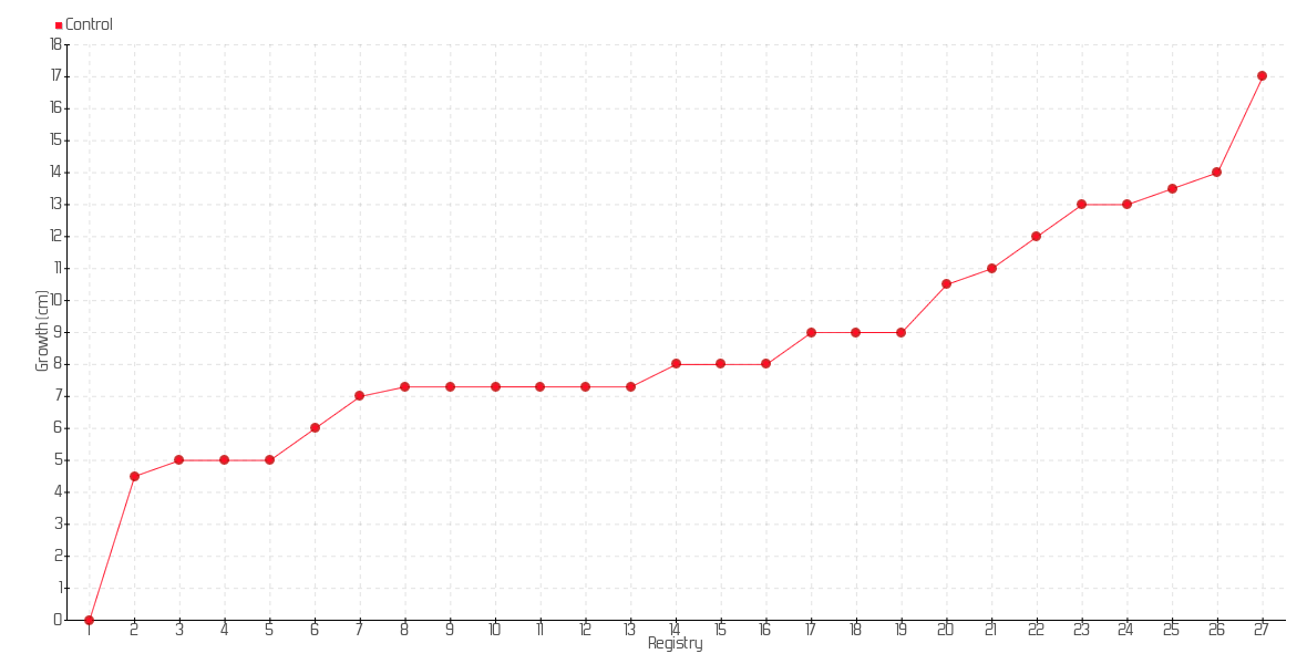 17 | 08/01/2014 | 22.00 cm | 1.00 cm | 0.0769 cm/day | 9.00 cm |