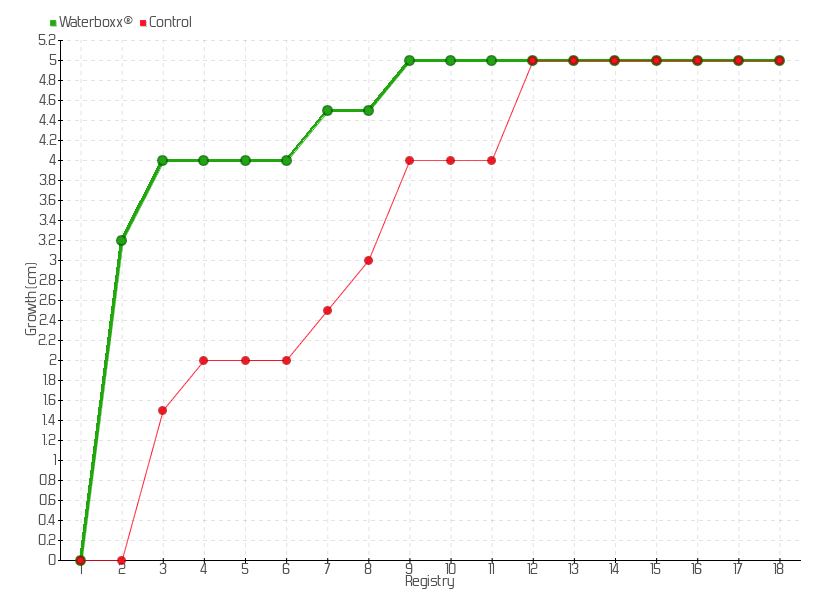 9 | 18/09/2013 | 55.00 cm | 0.50 cm | 0.0357 cm/day | 5.00 cm |