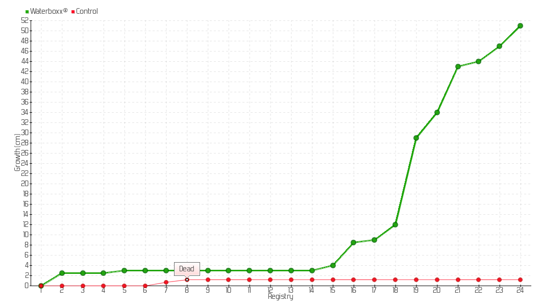 22 | 18/07/2023 | 50.00 cm | 1.00 cm | 0.0023 cm/day | 44.00 cm |