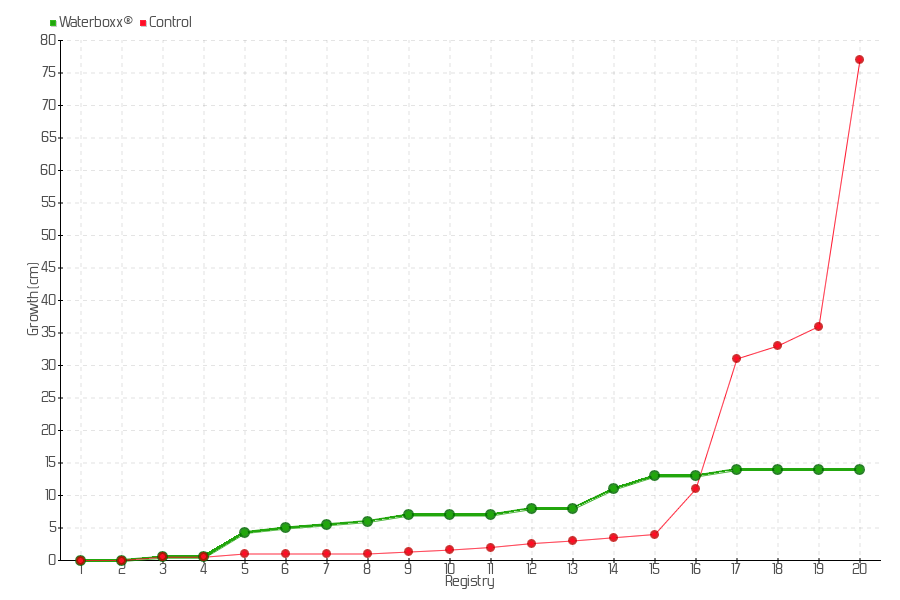 6 | 15/09/2015 | 8.00 cm | 0.70 cm | 0.0206 cm/day | 5.00 cm |
