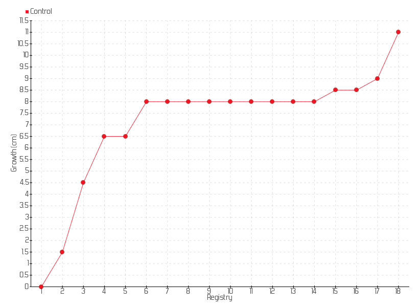 6 | 07/08/2013 | 12.00 cm | 1.50 cm | 0.1071 cm/day | 8.00 cm |
