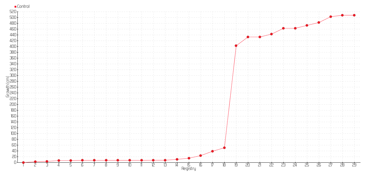 6 | 07/08/2013 | 14.50 cm | 0.50 cm | 0.0357 cm/day | 7.50 cm |