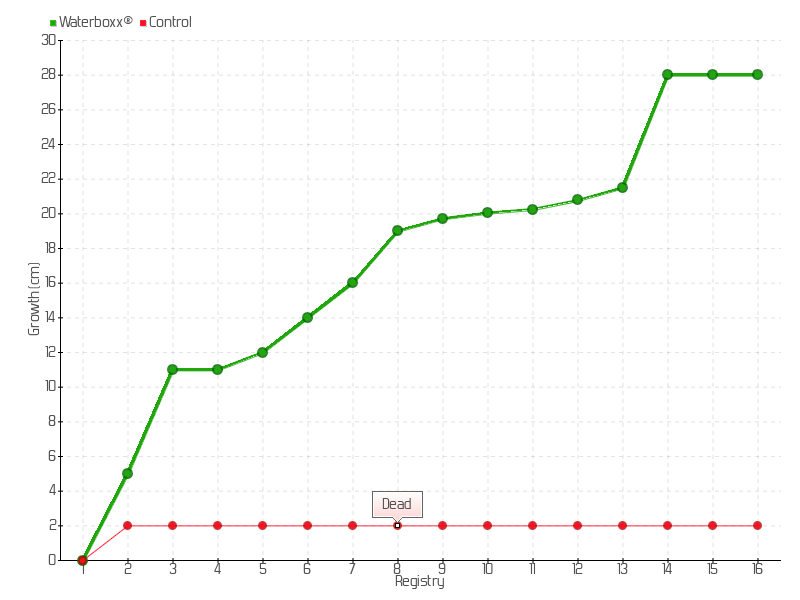 6 | 15/09/2015 | 21.00 cm | 2.00 cm | 0.0588 cm/day | 14.00 cm |