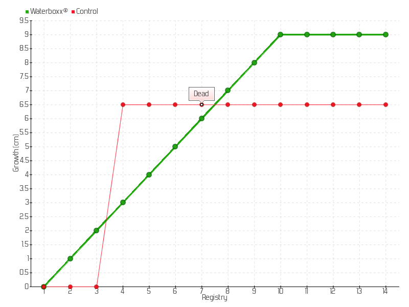 6 | 15/09/2015 | 10.00 cm | 1.00 cm | 0.0294 cm/day | 5.00 cm |