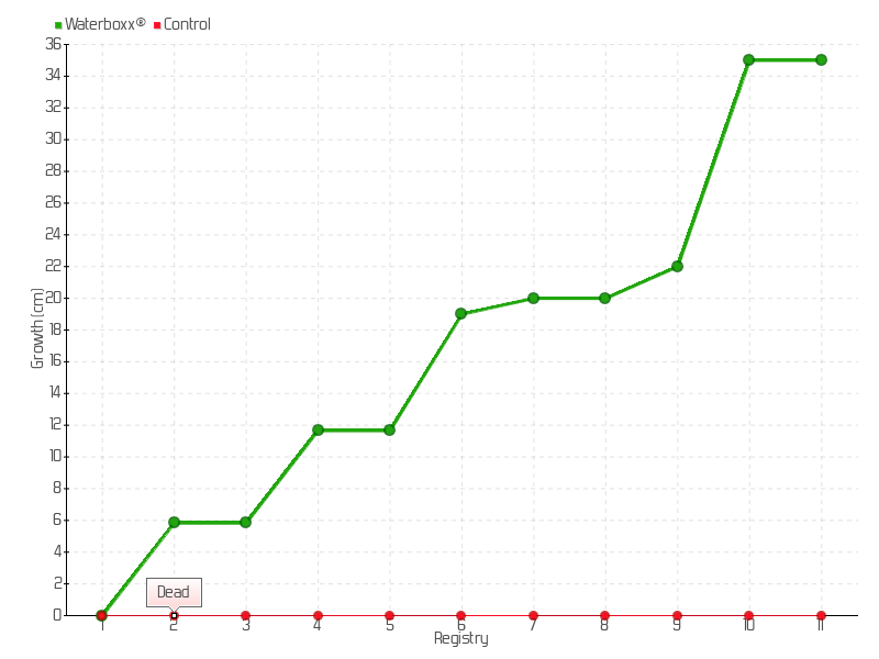 10 | 08/03/2015 | 50.00 cm | 13.00 cm | 0.3824 cm/day | 35.00 cm |
