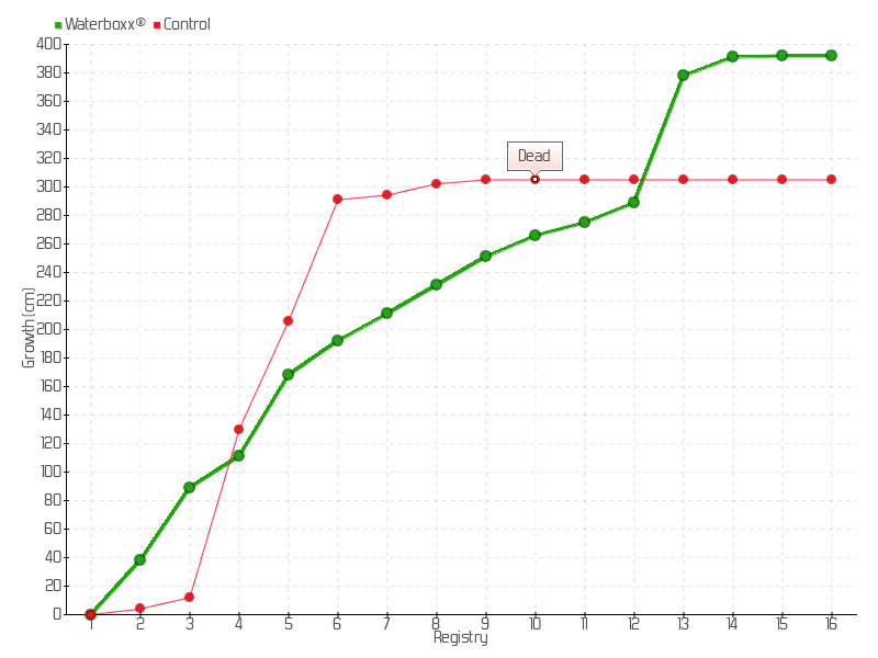 10 | 30/08/2016 | 285.00 cm | 15.00 cm | 0.3571 cm/day | 266.00 cm |