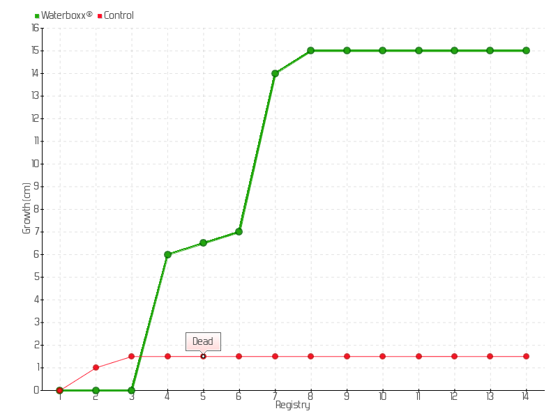8 | 20/06/2016 | 28.00 cm | 1.00 cm | 0.0303 cm/day | 15.00 cm |