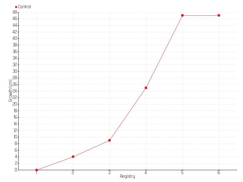 5 | 05/12/2016 | 62.00 cm | 22.00 cm | 0.0685 cm/day | 47.00 cm |