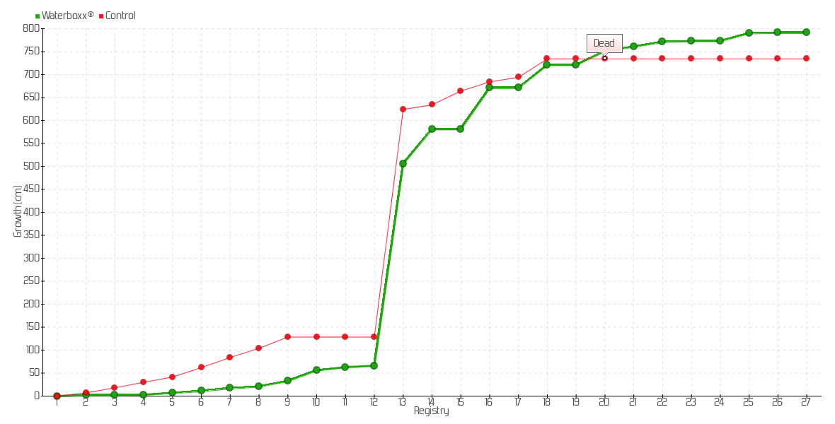 22 | 27/05/2021 | 800.00 cm | 10.00 cm | 0.1429 cm/day | 771.00 cm |