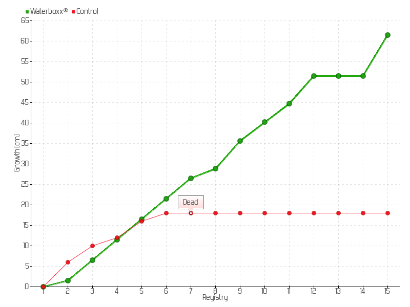 6 | 09/08/2016 | 50.00 cm | 5.00 cm | 0.1282 cm/day | 21.50 cm |