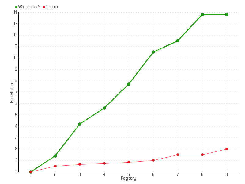6 | 12/07/2017 | 15.00 cm | 2.80 cm | 0.0215 cm/day | 10.50 cm |