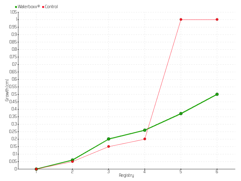 6 | 14/07/2017 | 5.00 cm | 0.13 cm | 0.0010 cm/day | 0.50 cm |
