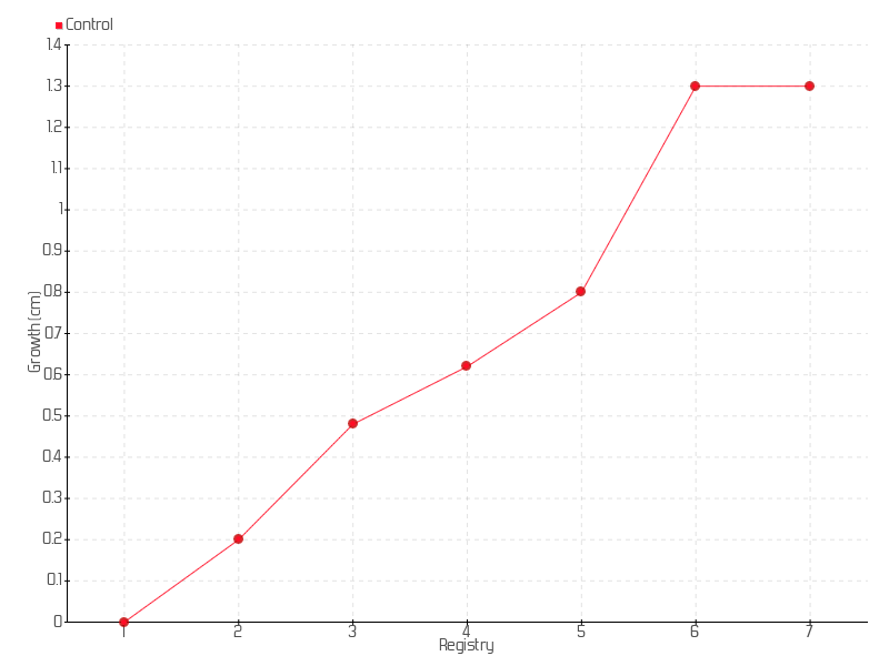 6 | 25/09/2017 | 2.50 cm | 0.50 cm | 0.0067 cm/day | 1.30 cm |