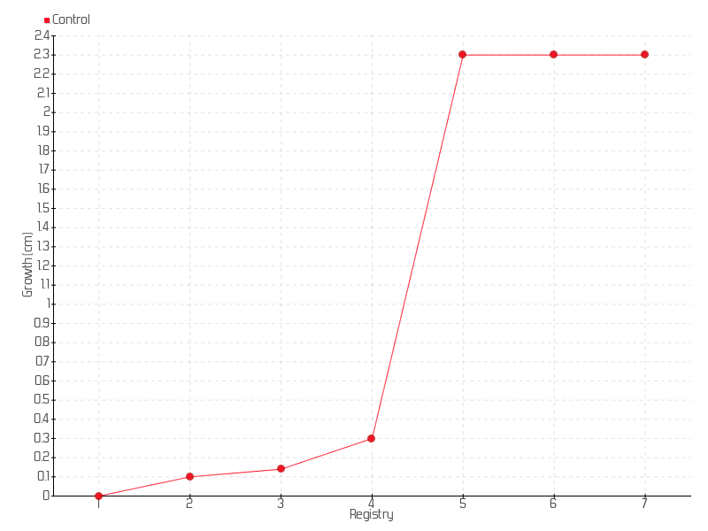 5 | 25/09/2017 | 3.50 cm | 2.00 cm | 0.0267 cm/day | 2.30 cm |