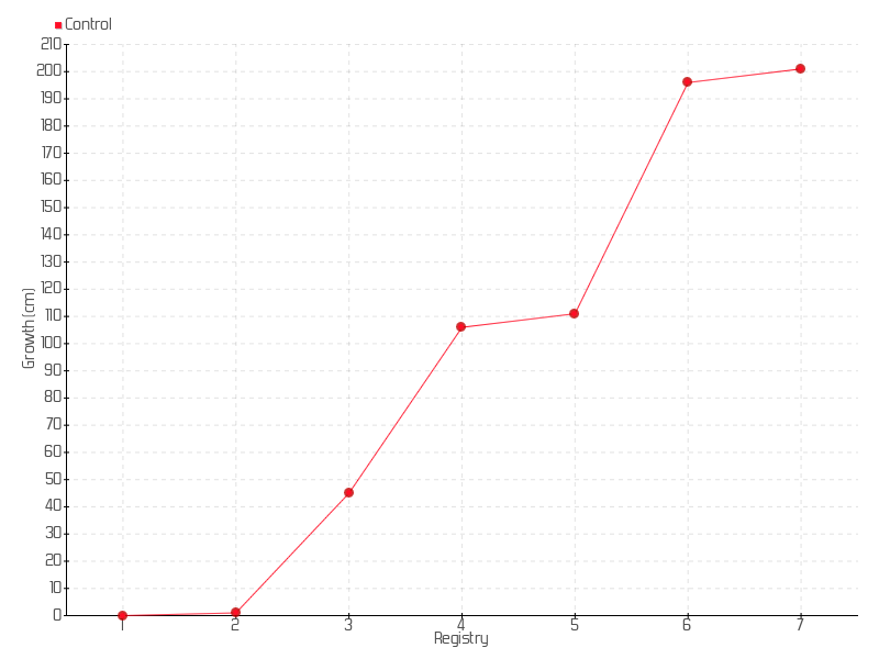 6 | 15/09/2016 | 205.00 cm | 85.00 cm | 3.5417 cm/day | 196.00 cm |
