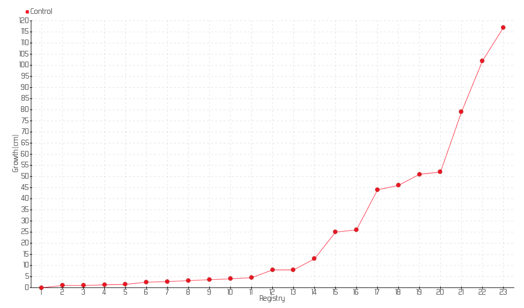 18 | 05/08/2021 | 54.00 cm | 2.00 cm | 0.0091 cm/day | 46.00 cm |