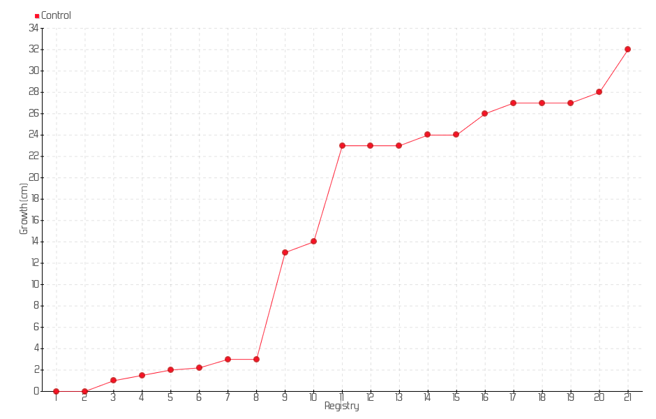 17 | 24/04/2023 | 34.00 cm | 1.00 cm | 0.0112 cm/day | 27.00 cm |
