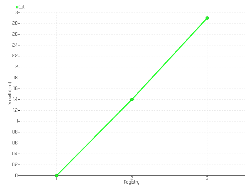 3 | 06/10/2025 | 3.00 cm | 1.50 cm | 0.2143 cm/day | 2.90 cm |