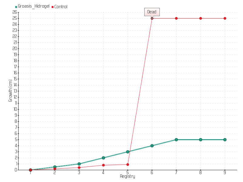 5 | 04/02/2019 | 16.00 cm | 1.00 cm | 0.0132 cm/day | 3.00 cm |