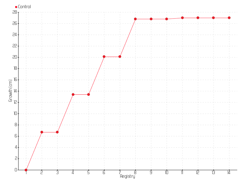 2 | 10/07/2013 | 37.70 cm | 6.70 cm | 0.1595 cm/day | 6.70 cm |