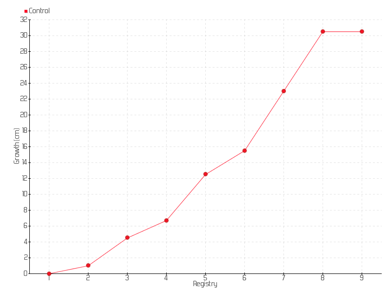 8 | 26/01/2018 | 32.00 cm | 7.50 cm | 0.9375 cm/day | 30.50 cm |