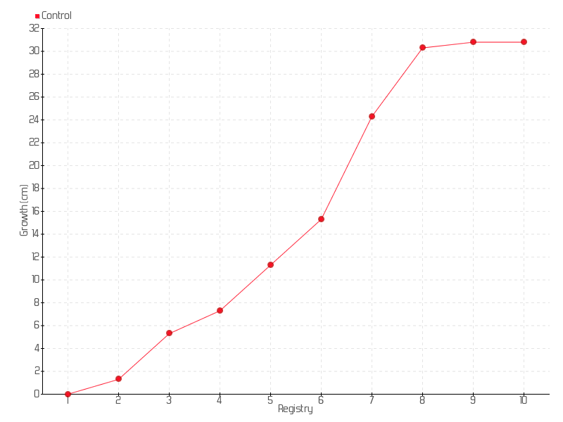 9 | 02/02/2018 | 32.50 cm | 0.50 cm | 0.0714 cm/day | 30.80 cm |