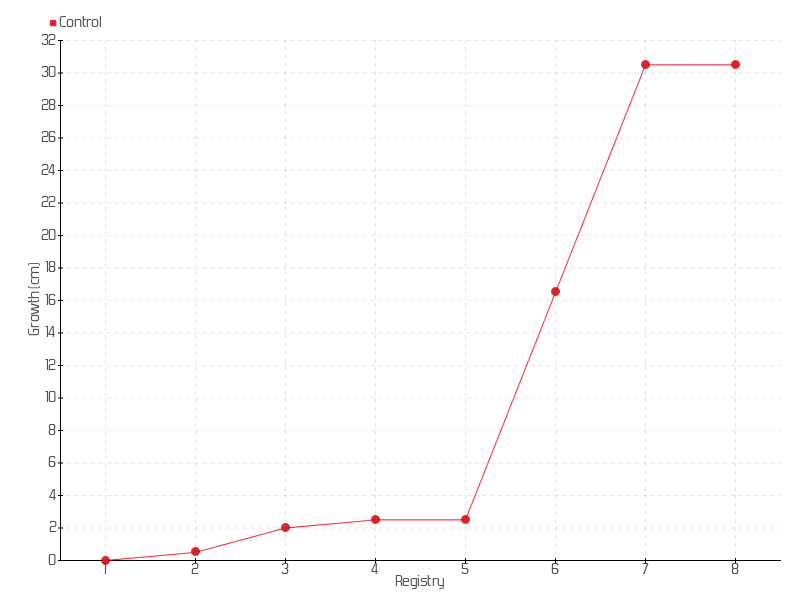 7 | 14/05/2022 | 43.00 cm | 14.00 cm | 0.0461 cm/day | 30.50 cm |