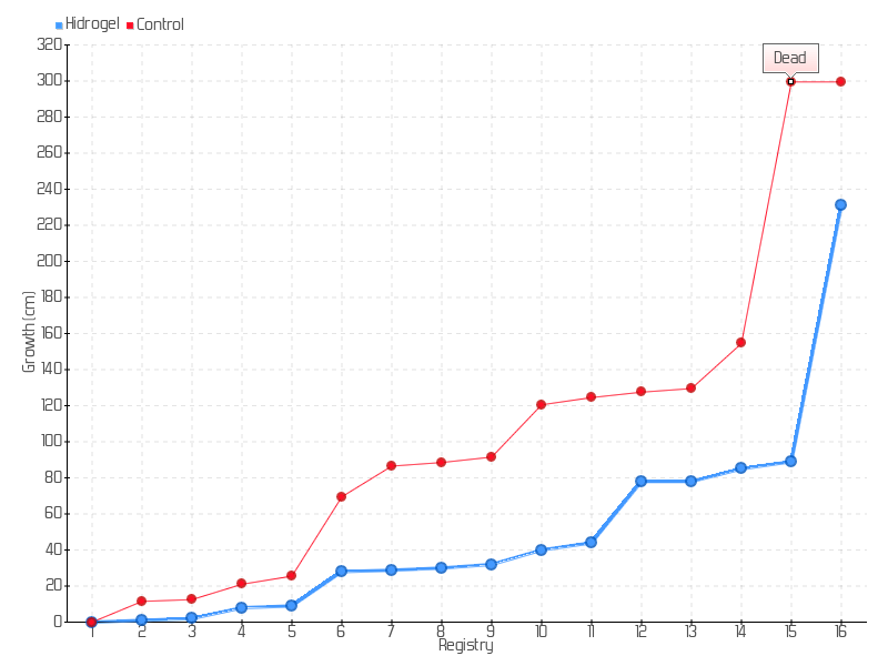 5 | 24/09/2019 | 34.00 cm | 1.00 cm | 0.0132 cm/day | 9.00 cm |