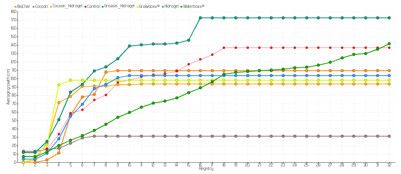 Average growth of plants sown of the species Clerodendrum molle: