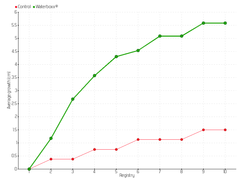 Average growth of plants sown of the species Cocos nucifera: