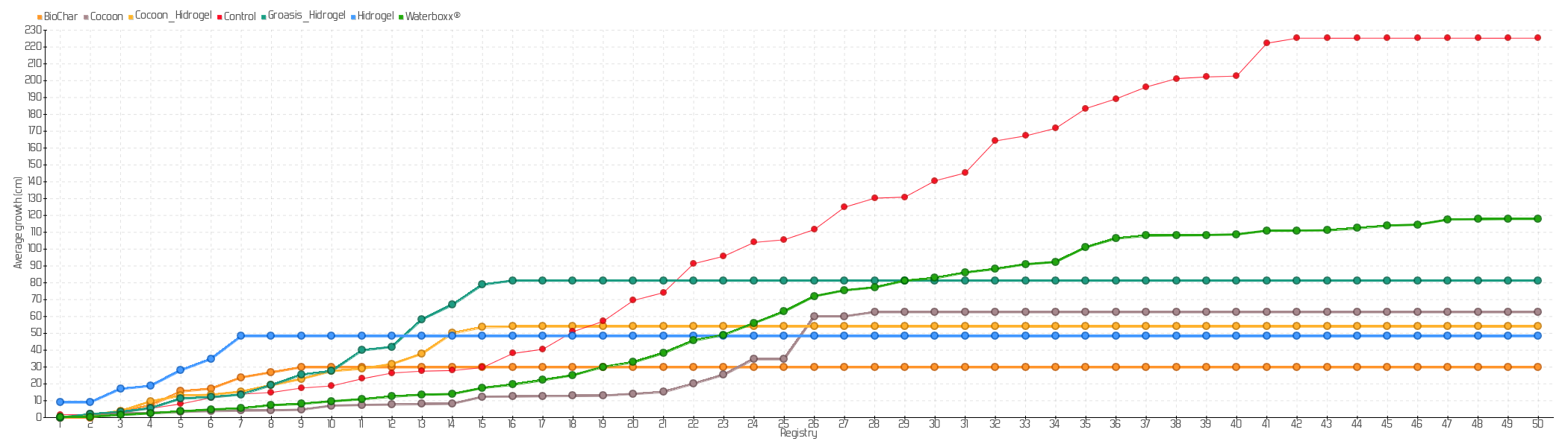 Average growth of plants sown of the species Opuntia echios var. gigantea:
