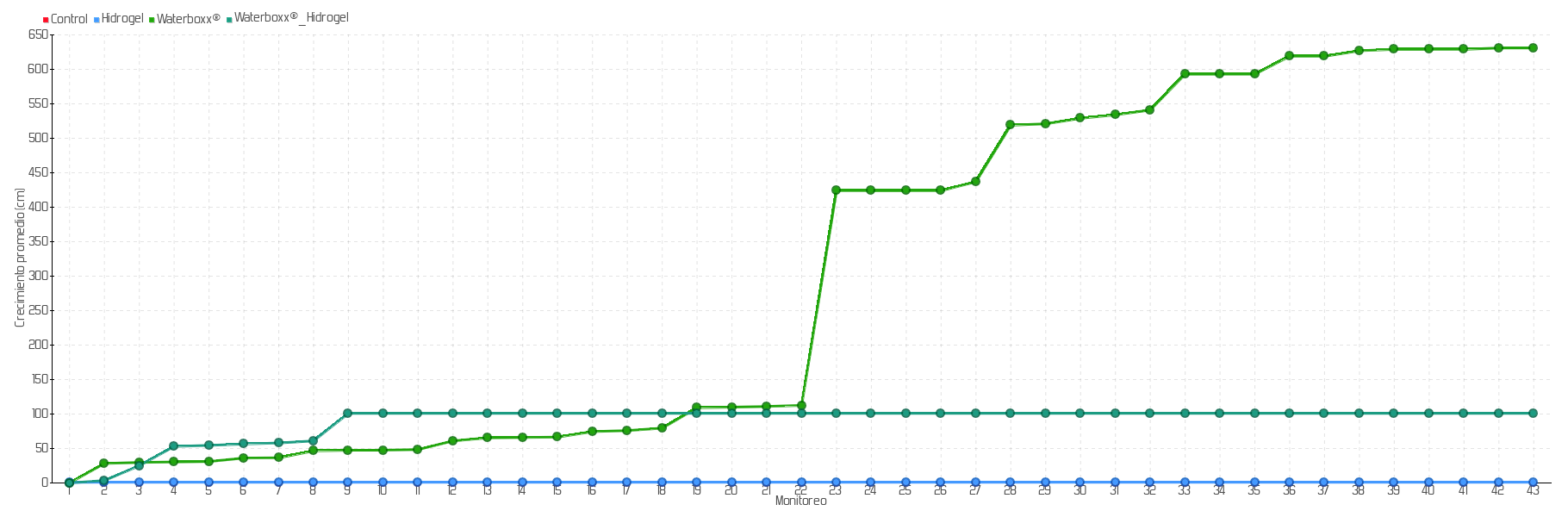 Crecimiento promedio de las plantas sembradas de la especie Grabowskia boerhaaviaefolia en la isla Santa Cruz: