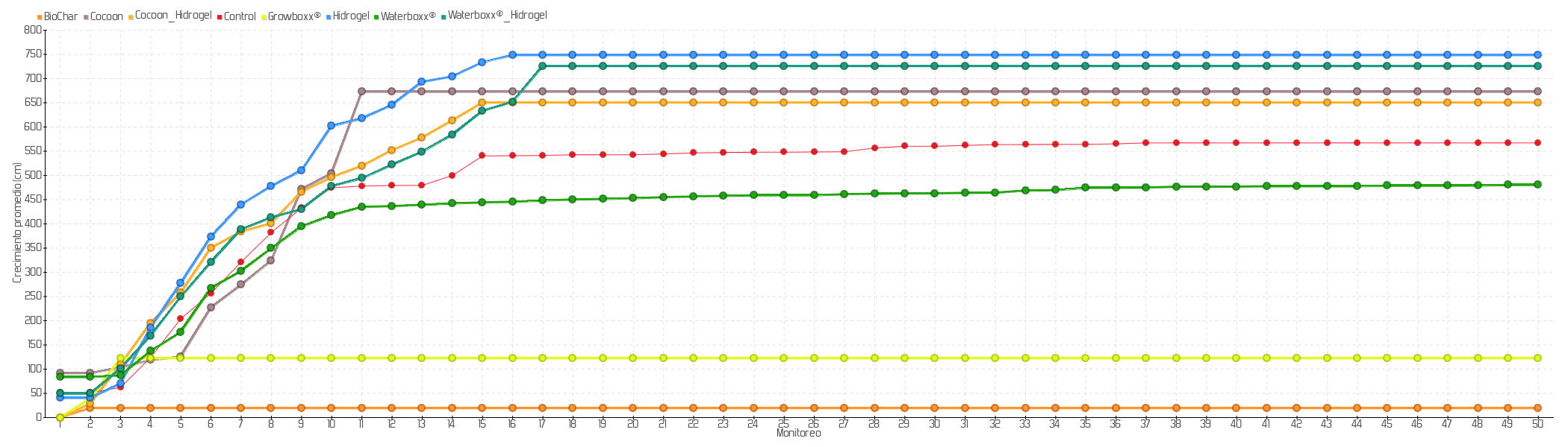 Crecimiento promedio de las plantas sembradas de la especie Scalesia pedunculata var. pedunculata en la isla Santa Cruz: