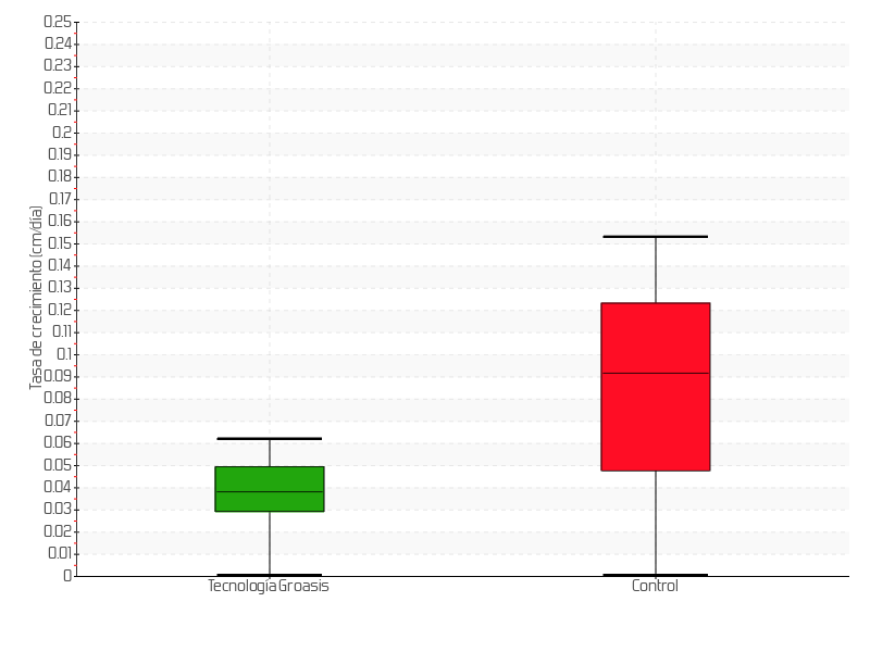 | 5 | 15/07/2013 | 13.00 cm | 1.50 cm | 0.2143 cm/día | 2.50 cm |