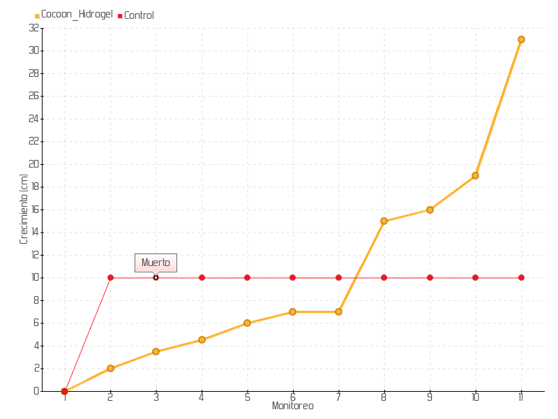 | Monitoreo | Fecha | Altura | Crecimiento | Tasa de crecimiento | Crecimiento total |