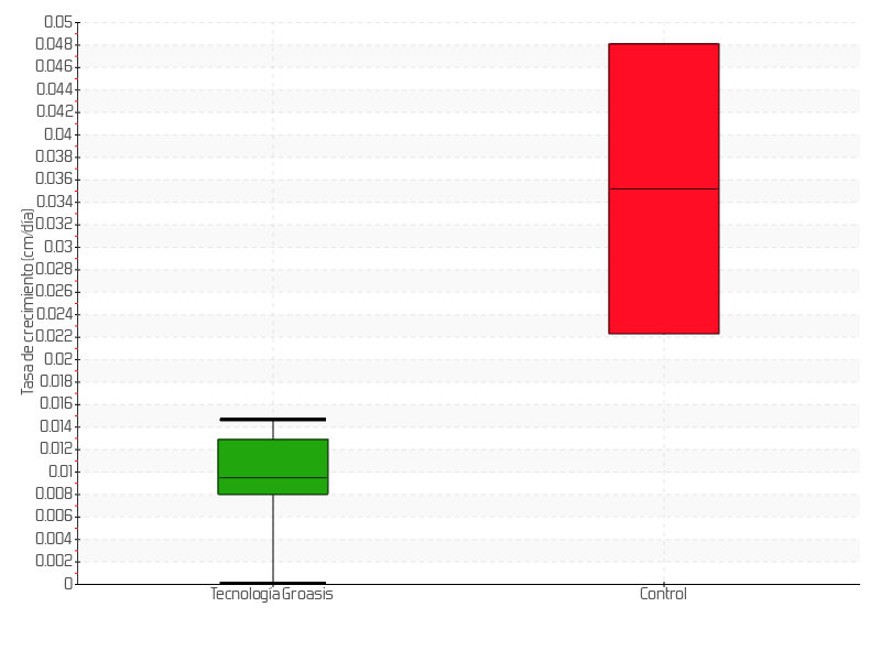 | 5 | 25/03/2021 | 16.00 cm | 1.50 cm | 0.0263 cm/día | 6.00 cm |
