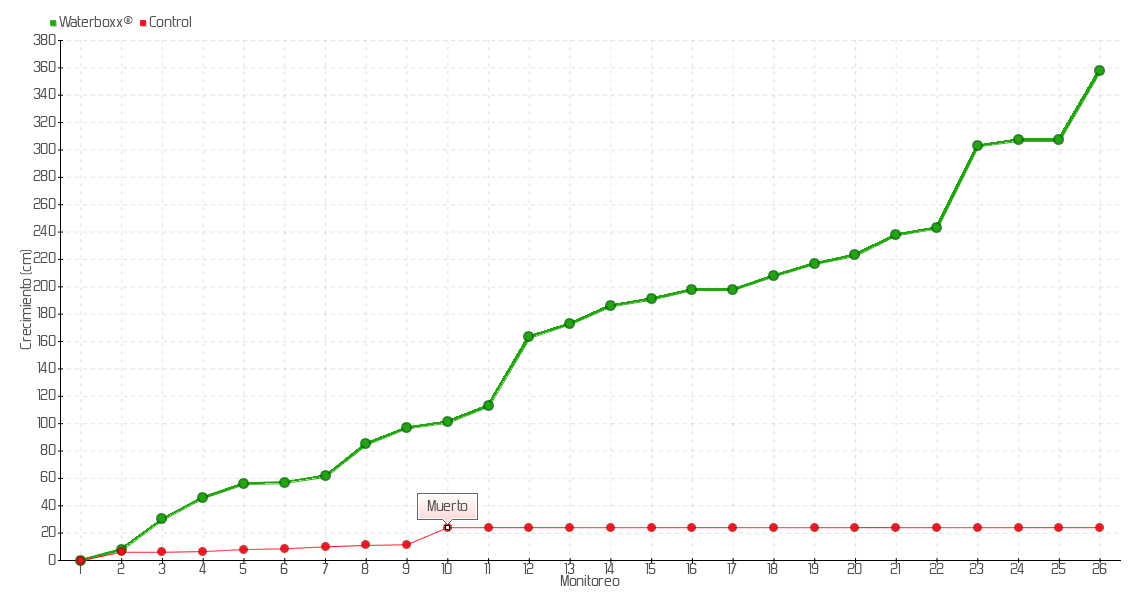 | 10 | 04/06/2015 | 128.00 cm | 4.00 cm | 0.2667 cm/día | 101.00 cm |
